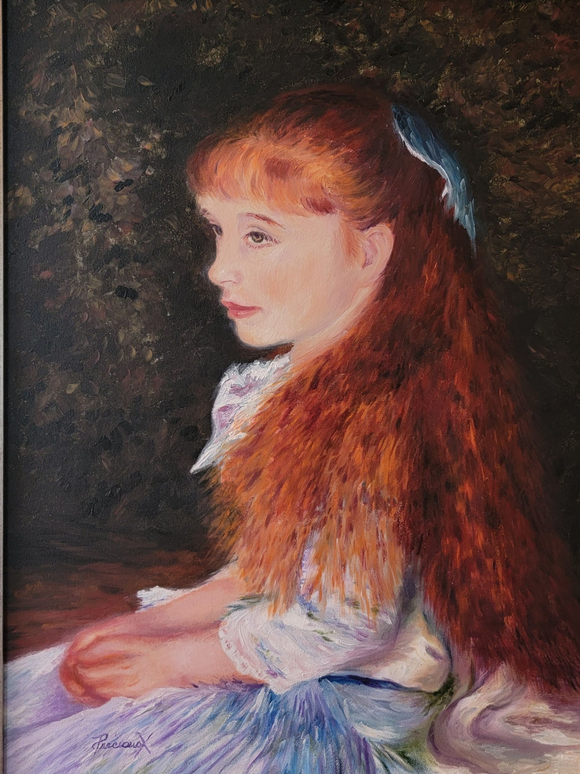 Some photos of completed works are shown here. Reproductions of Wysocki, Renoir, Van Gogh, Cezanne. Prices vary based on size and technical difficulty.